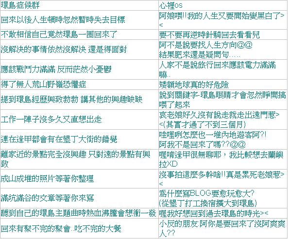 10.聽說有些人去環島後會得到環島症候群,你有嗎?