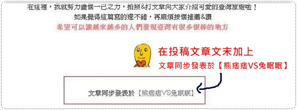 *你們必須在投稿文章文末加上 文章同步發表於【熊痞痞VS兔眠眠】<<這裡面是有連結的