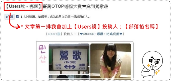 *我會將轉過來的文章,標題設為【Users說+部落格暱稱】+標題