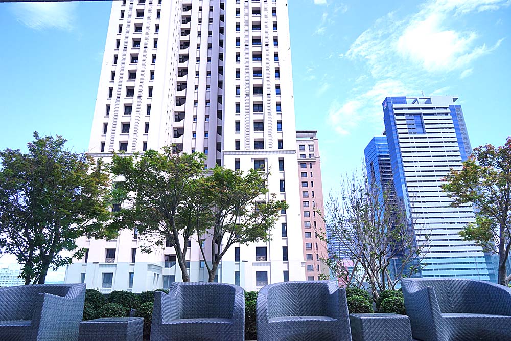 一旁還有戶外座位可以休息,你可以想像嗎?那種坐在與其他豪宅樓層平行的感覺很妙呢!人生又可以有多少次這種際遇呢?