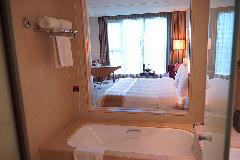 室內空間如上,請忽視我門口的包包啊!坪數算蠻大間的,還有沙發座椅與可以辦公的地方,不論是想要休息、辦公、聊天通通具備,沐浴部分則是有一片大透明窗,可以兩邊互看,有點小害羞的感覺。