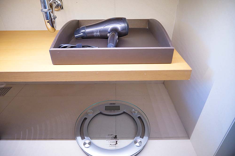 吹風機與體重計,是放在浴室內的,不過既然是出來放鬆旅行的,那其實體重什麼的真的不是很重要啦!可以大吃大喝好好玩樂一番才是重點。