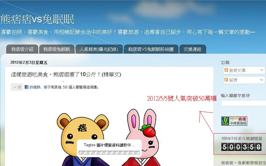 【熊痞痞VS兔眠眠】旅遊美食部落客正式突破50萬人氣!感謝支持