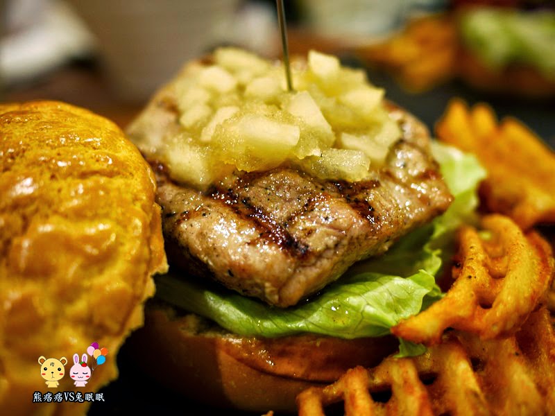 但是他們家的【烙烤自然豬蘋果醬漢堡】我就很喜歡,外面竟然是用波蘿麵包耶,香酥帶鹹的口感比一般的漢堡皮更有特色且好吃。
