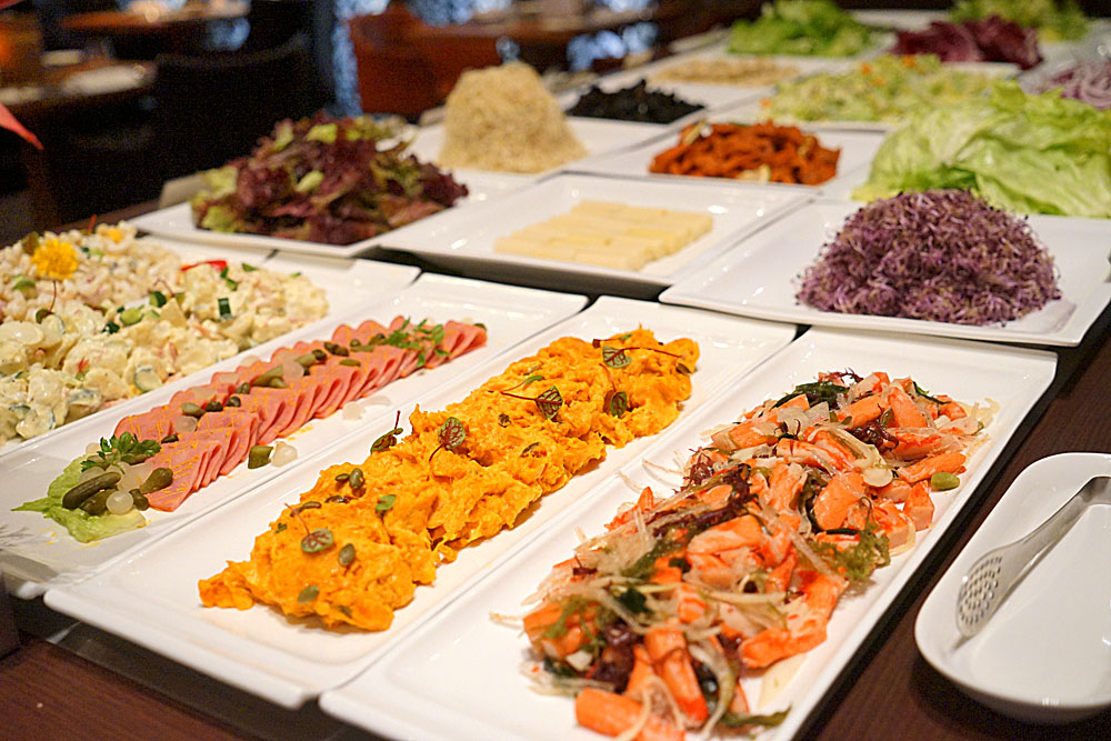 映景觀餐廳的用餐模式,是以點一份主餐再搭配繽紛的花園沙拉吧,無限取用的半自助模式!是說剛好前陣子都在找石蓮花的產品,這邊竟然也有一片片可直接食用的石蓮花片耶!