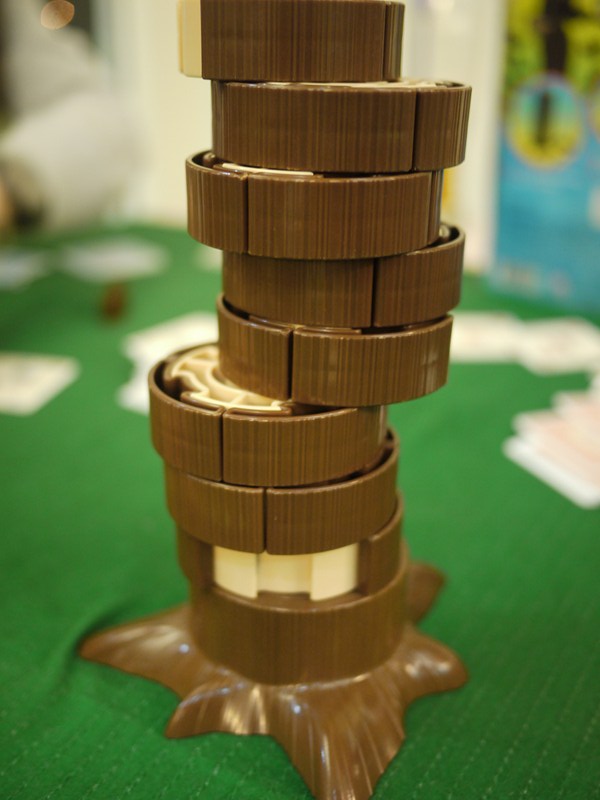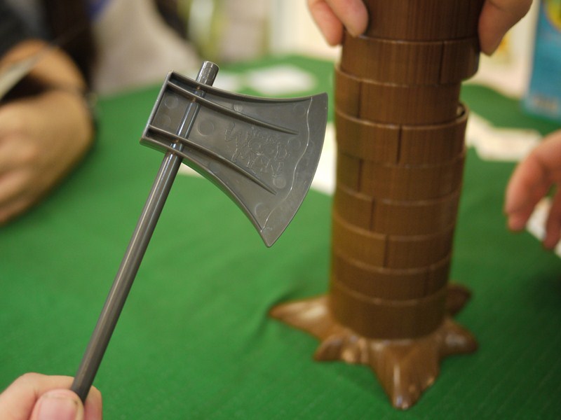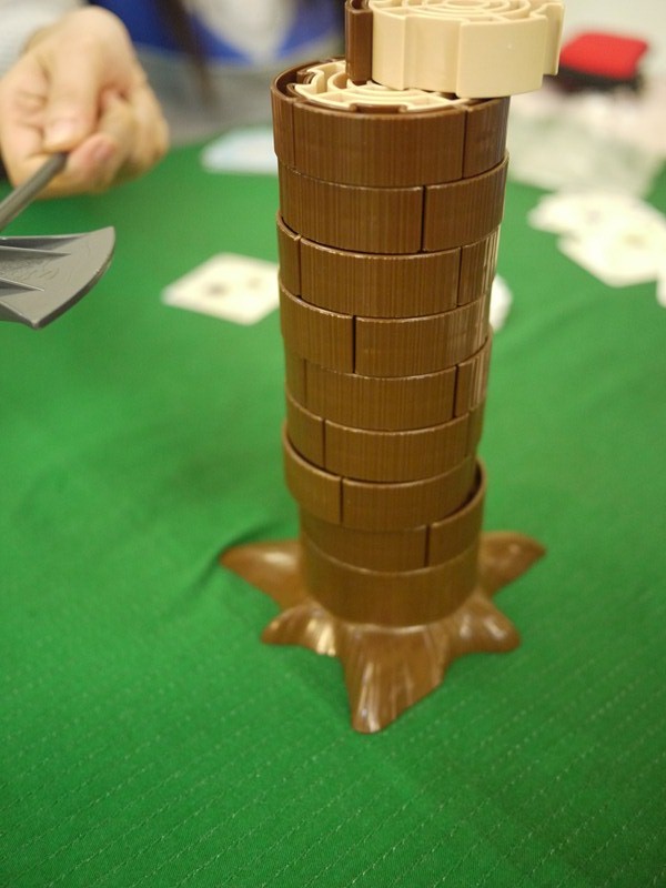 這款遊戲如果是按照正常玩法進行,熊覺得蠻無腦的,但若能加上懲罰,遊戲就會變得很邪惡(例如扣一分彈一下耳朵),大家出手時也會相對的謹慎起來,雖然搶先機大力敲可以把樹皮打掉拿分,但也很容易把樹幹一起弄倒。