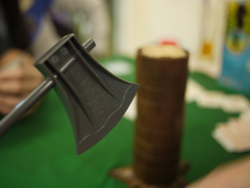 這款遊戲比較適合2~7人玩,等前置作業結束後,採用回合制的方式來砍樹,每人每次共可以敲兩下。
