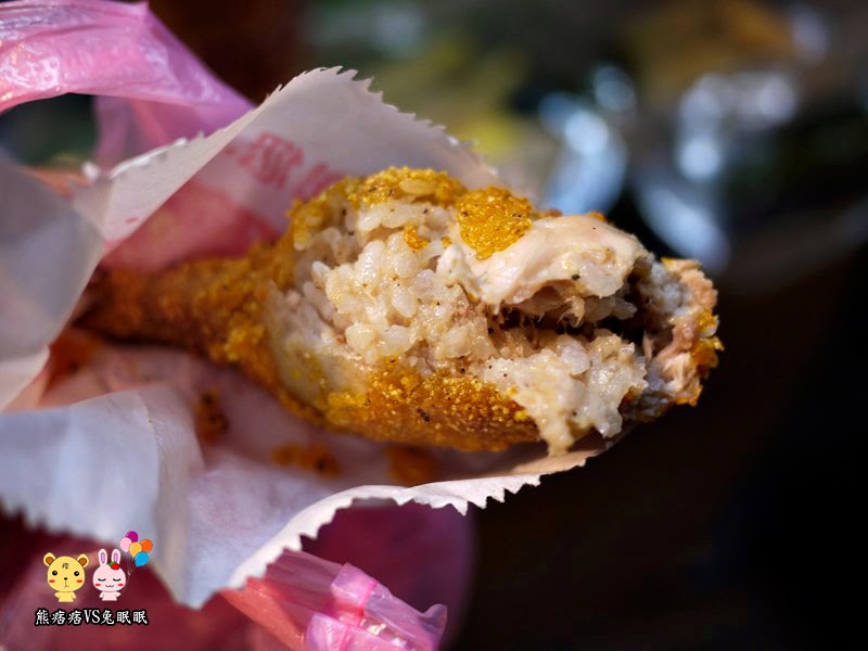 而非油炸的,主要製作過程應該是把雞翅的骨頭拔出,裡面塞進飯後,在拿去烤。