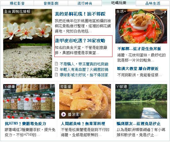 【2013/5/16】逢甲夜市必吃登上奇摩首頁記錄(第59篇)