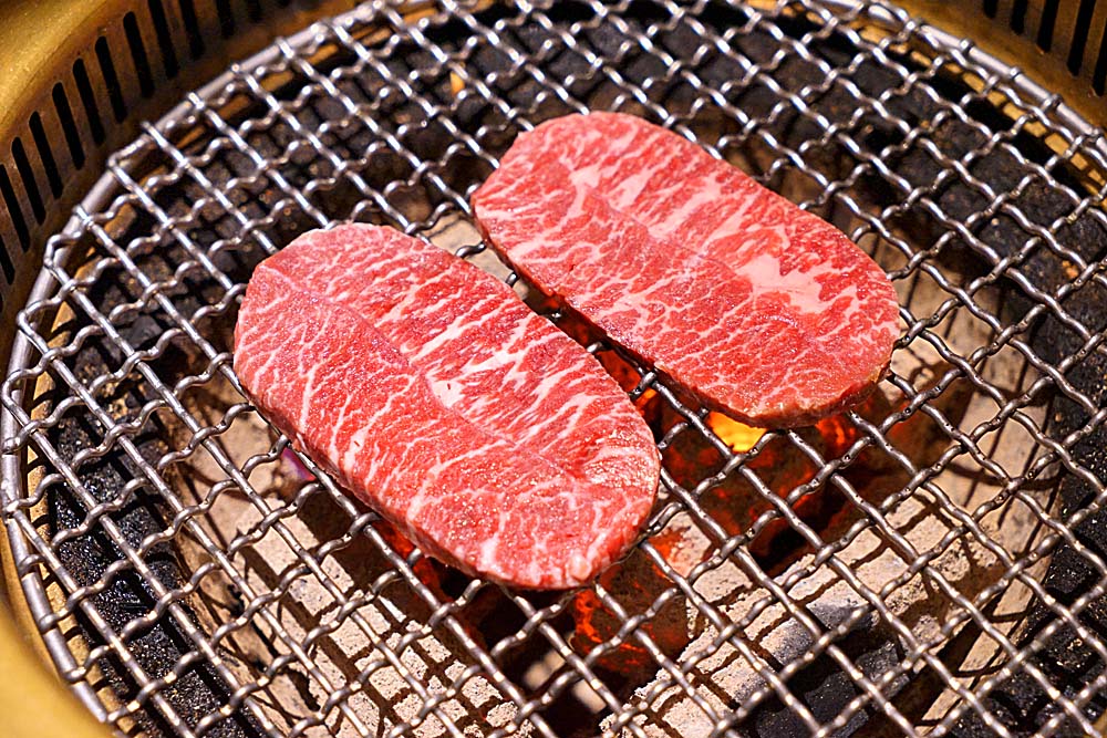 看著整塊烤的過程,真是豪爽,也算是裡面厚度不錯的一款,油花分布的很漂亮,烤完後會弄成小塊小塊的方便享用,記得不要烤的太老,建議五分左右,去感受那細嫩的肉質,要去享受那種油脂鎖定在裡面且含入嘴中溢出肉汁甜度的滋味。
