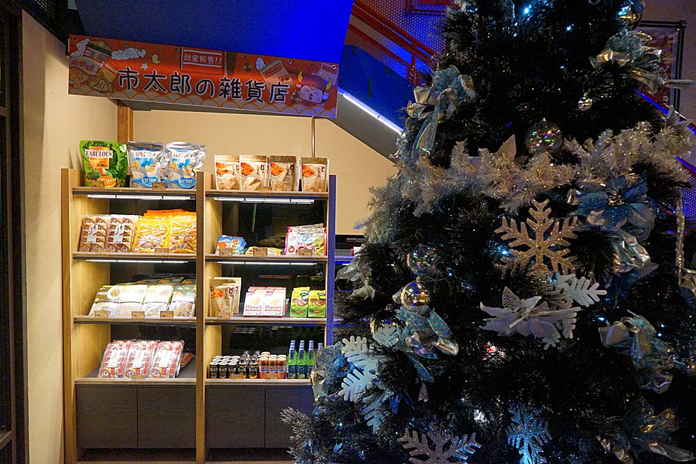 聖誕節將至,一進門就看到大聖誕樹擺在裡面,旁邊有一區市太郎的雜貨店,有賣一些零食可以參考。